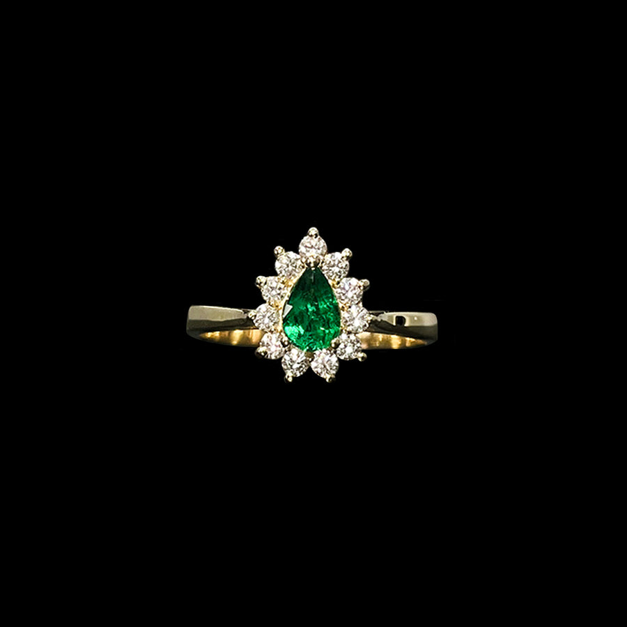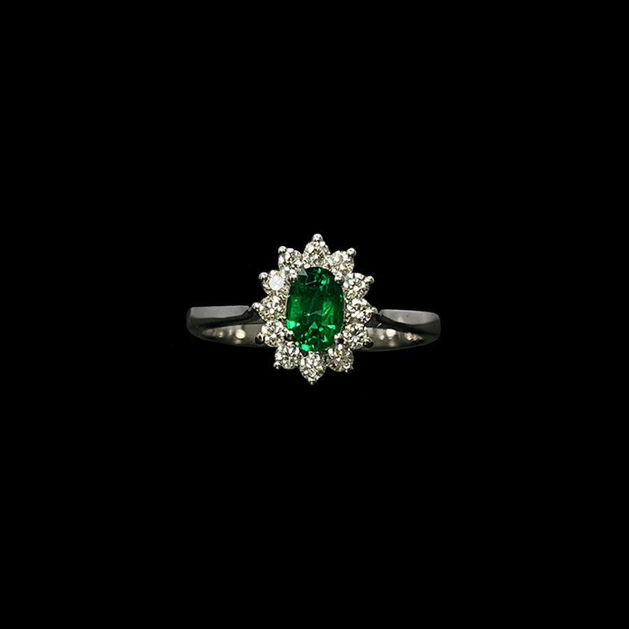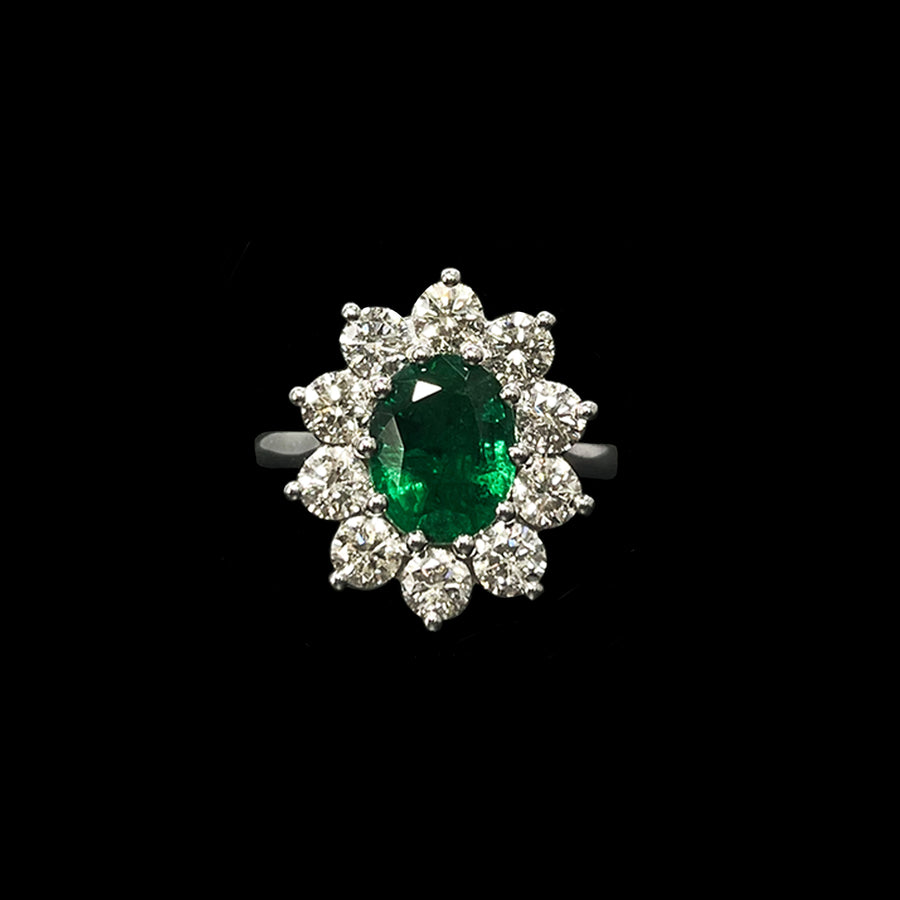 Emerald and Diamond ring | Cluster |Platinum