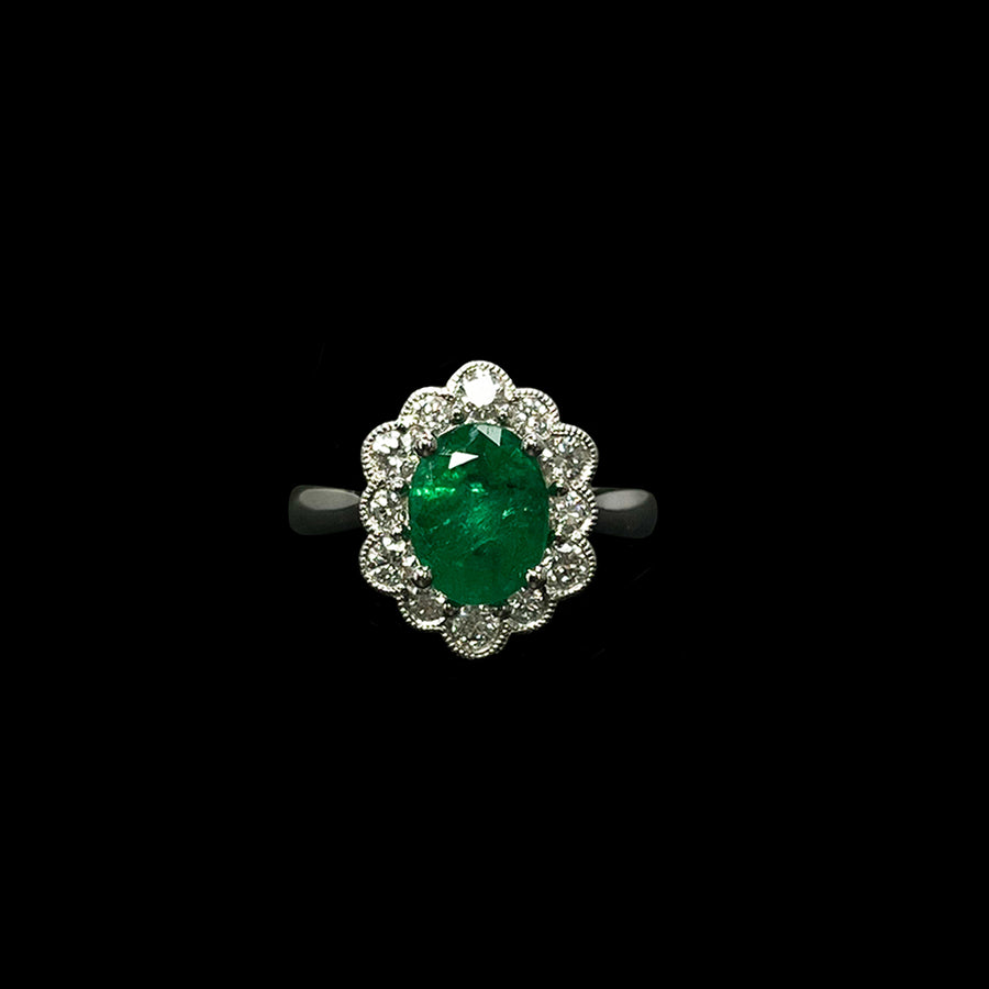 Emerald and Diamond ring | Cluster | Platinum